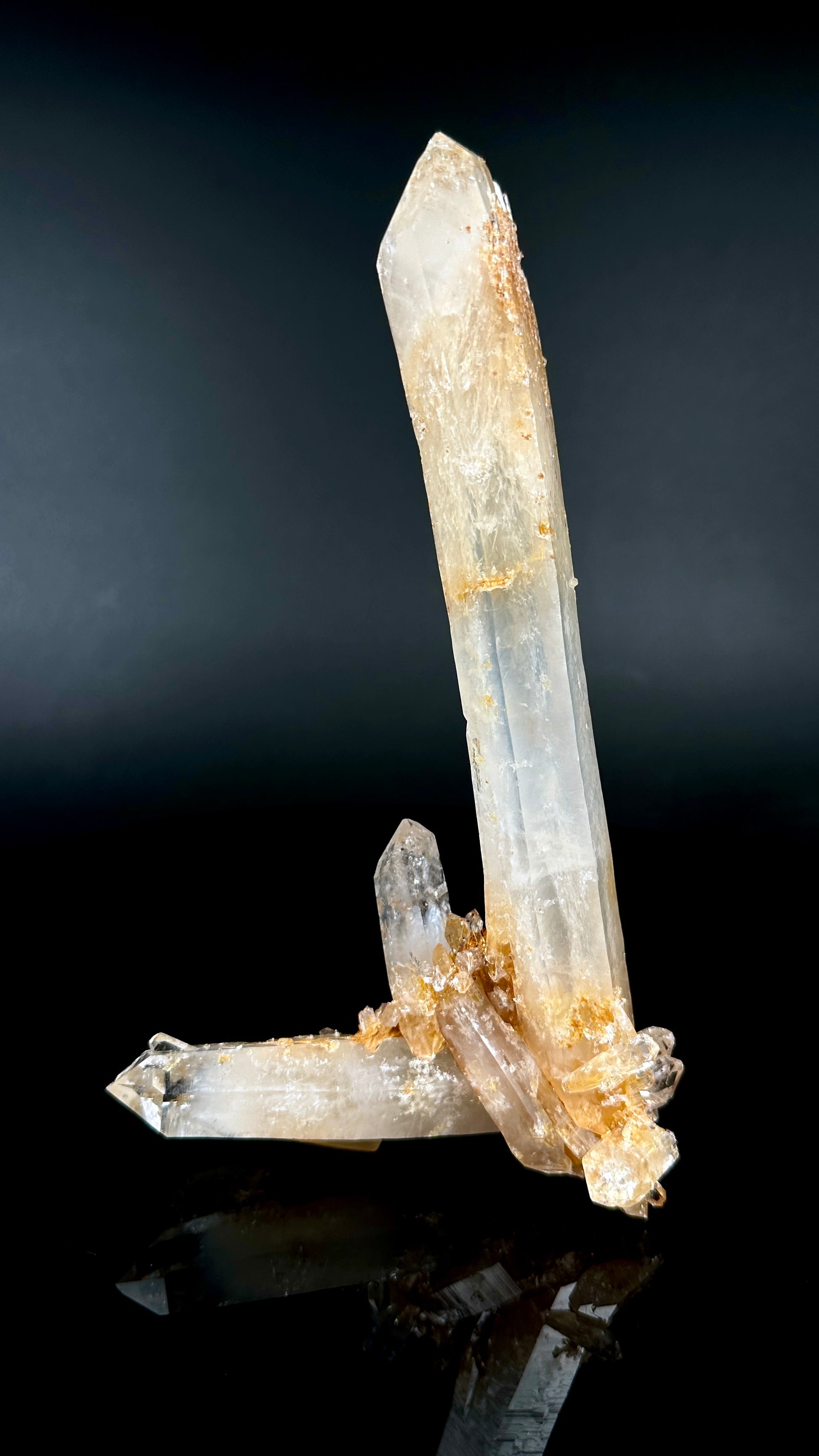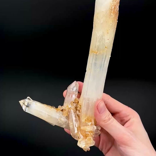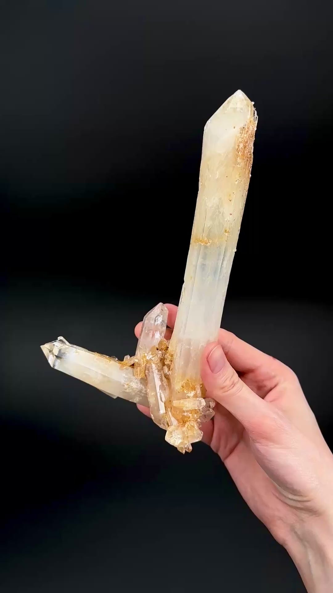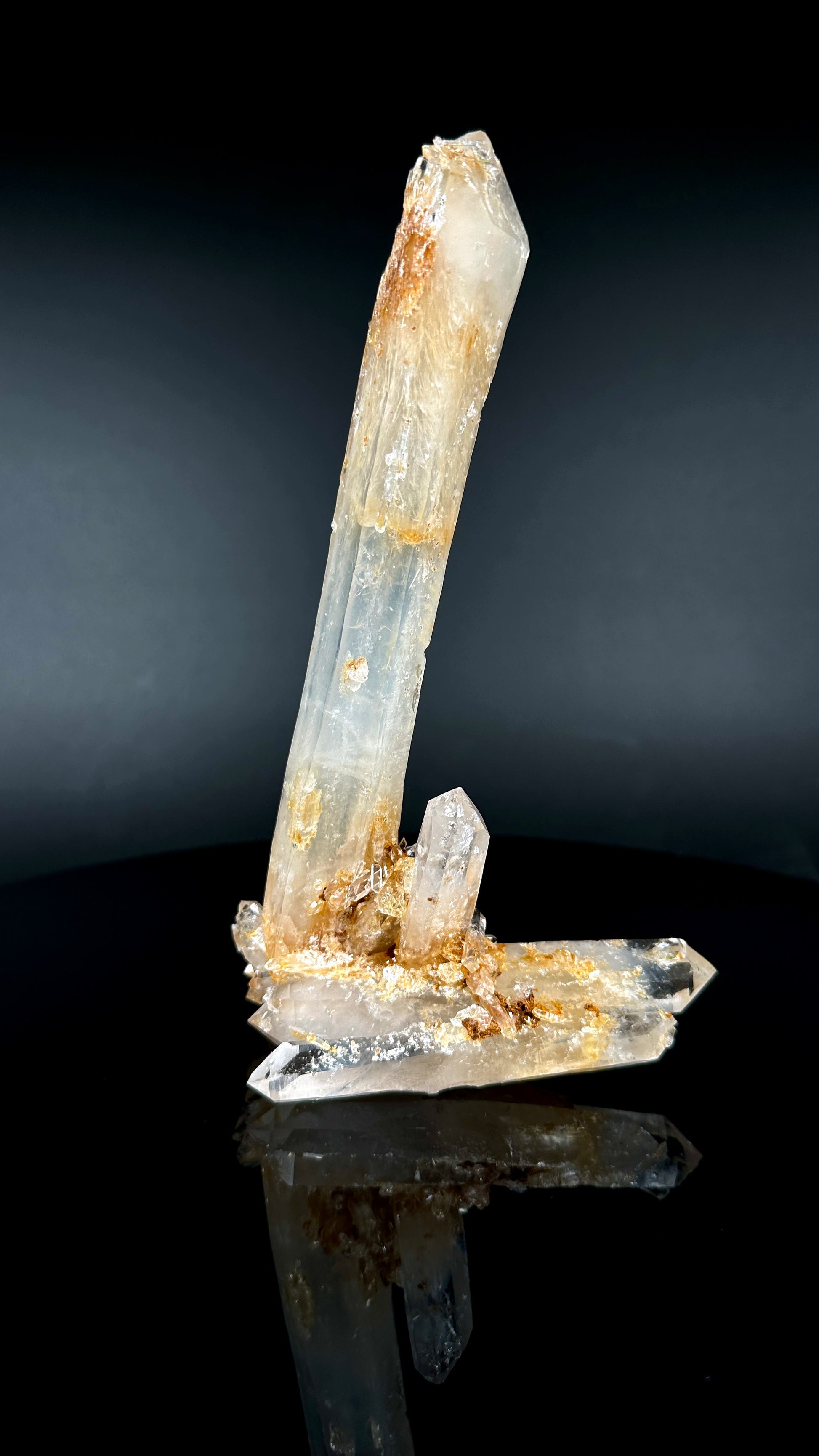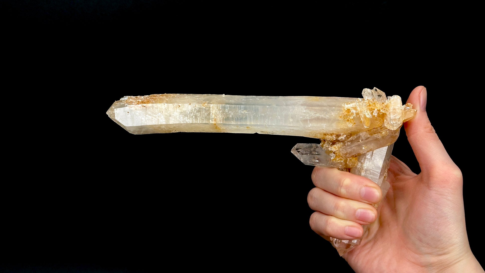 コロンビア産、非常に希少なダブルターミネーテッドDNAインターツイーンブルースモークゴールデンヒーラーレムリアンクォーツクリスタルポイント(CO-202)402g