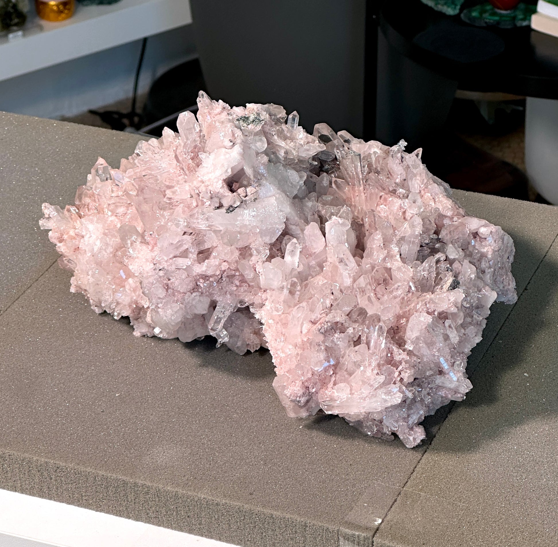 非常に高品質のピンクレムリアンクォーツクラスター。原産地から丁寧に手作業で選別され、その後、当社の倉庫で直接二重に選別されています💖