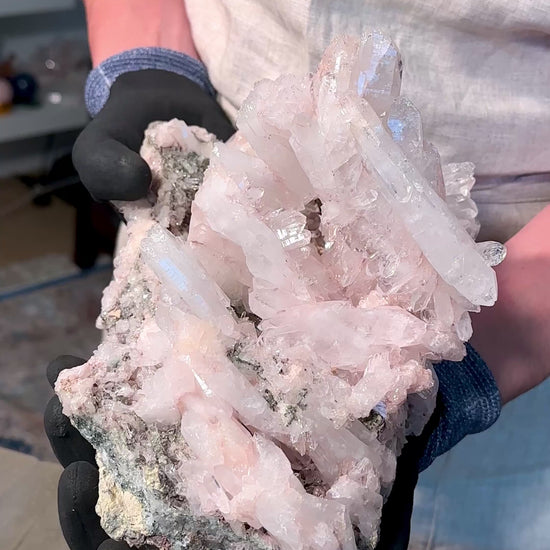 非常に高品質のピンクレムリアンクォーツクラスター。原産地から丁寧に手作業で選別され、その後、当社の倉庫で直接二重に選別されています💖