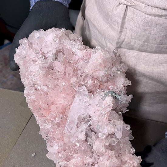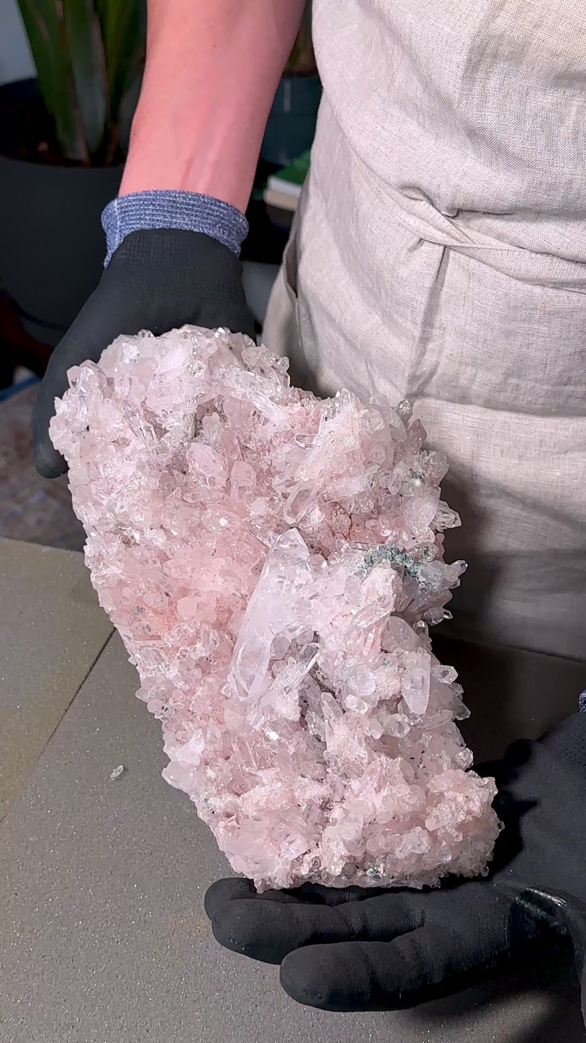 非常に高品質のピンクレムリアンクォーツクラスター。原産地から丁寧に手作業で選別され、その後、当社の倉庫で直接二重に選別されています💖