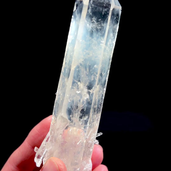 Blue Feather Lemurians! 🩵A beautiful contrast between super optical transparency and misty inclusions that resemble floating blue feathers in the core of the crystal, it's a minerals called cookeite and it's only visible when light passes through, creating a blue opalescence (just like the sky!!) 🦋
