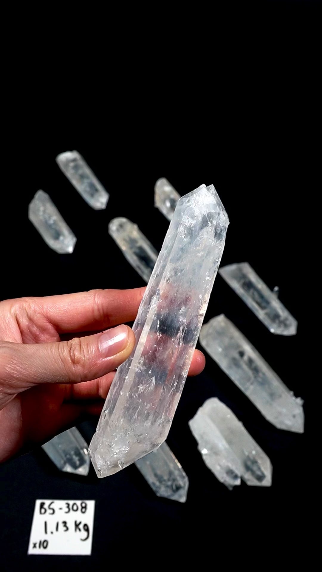 Blue Feather Lemurians! 🩵A beautiful contrast between super optical transparency and misty inclusions that resemble floating blue feathers in the core of the crystal, it's a minerals called cookeite and it's only visible when light passes through, creating a blue opalescence (just like the sky!!) 🦋