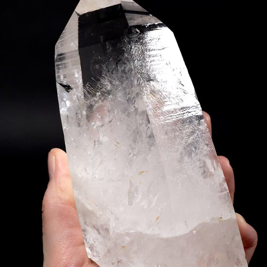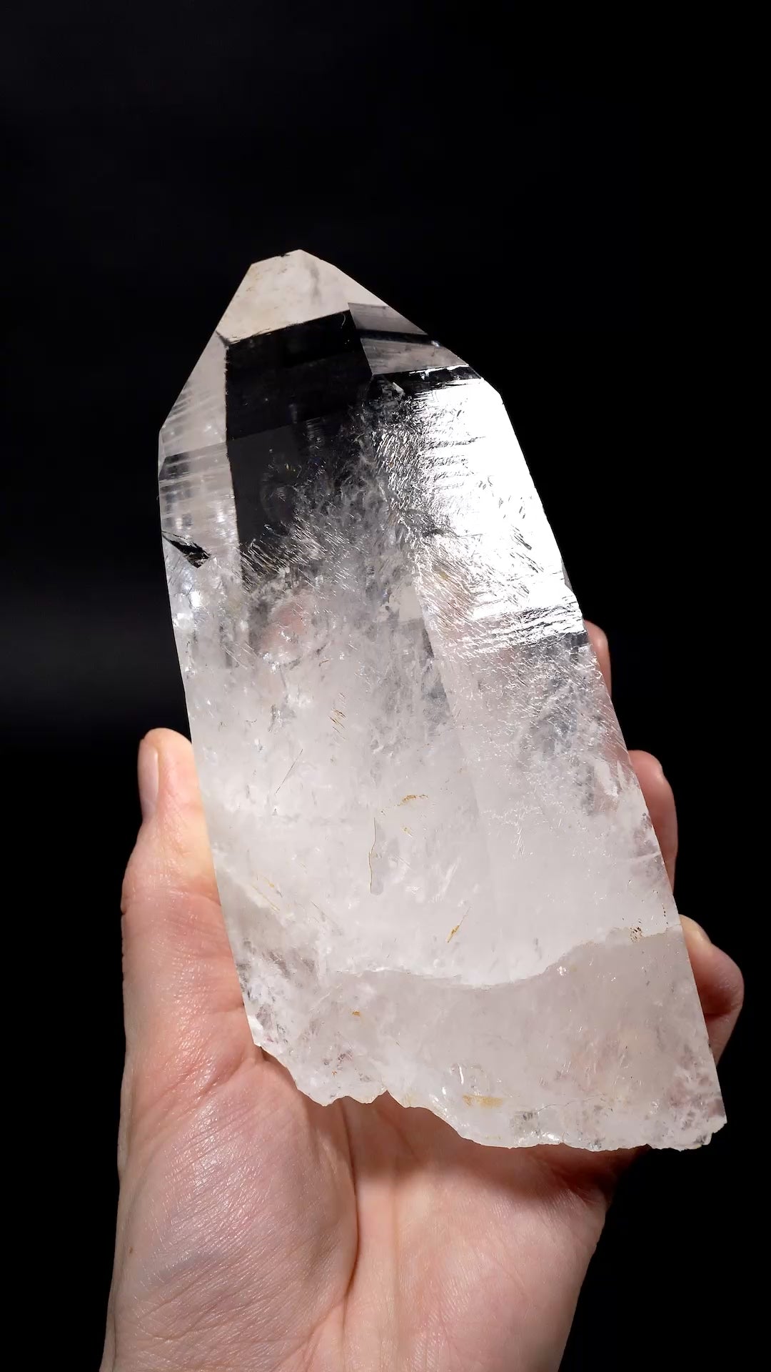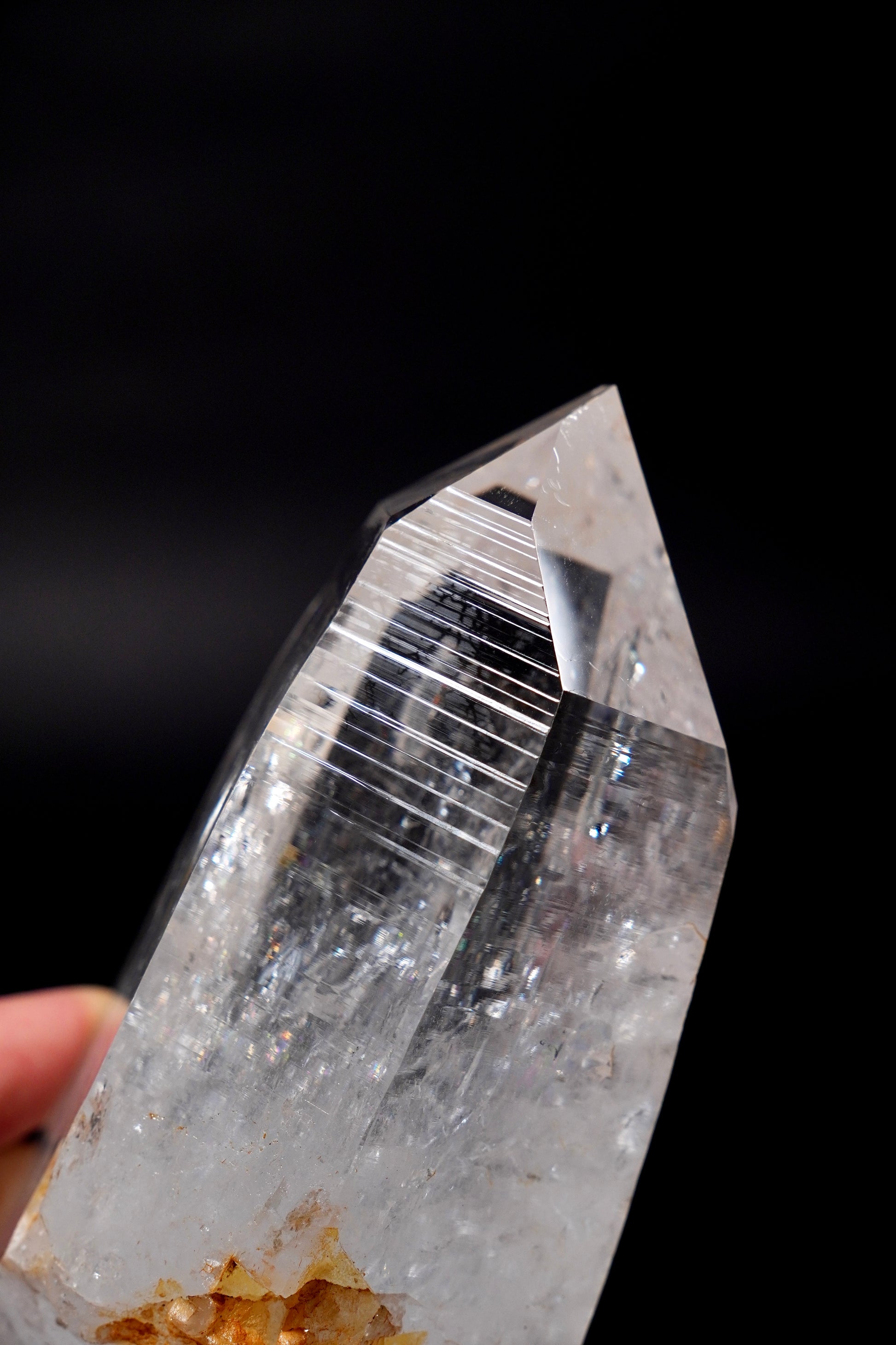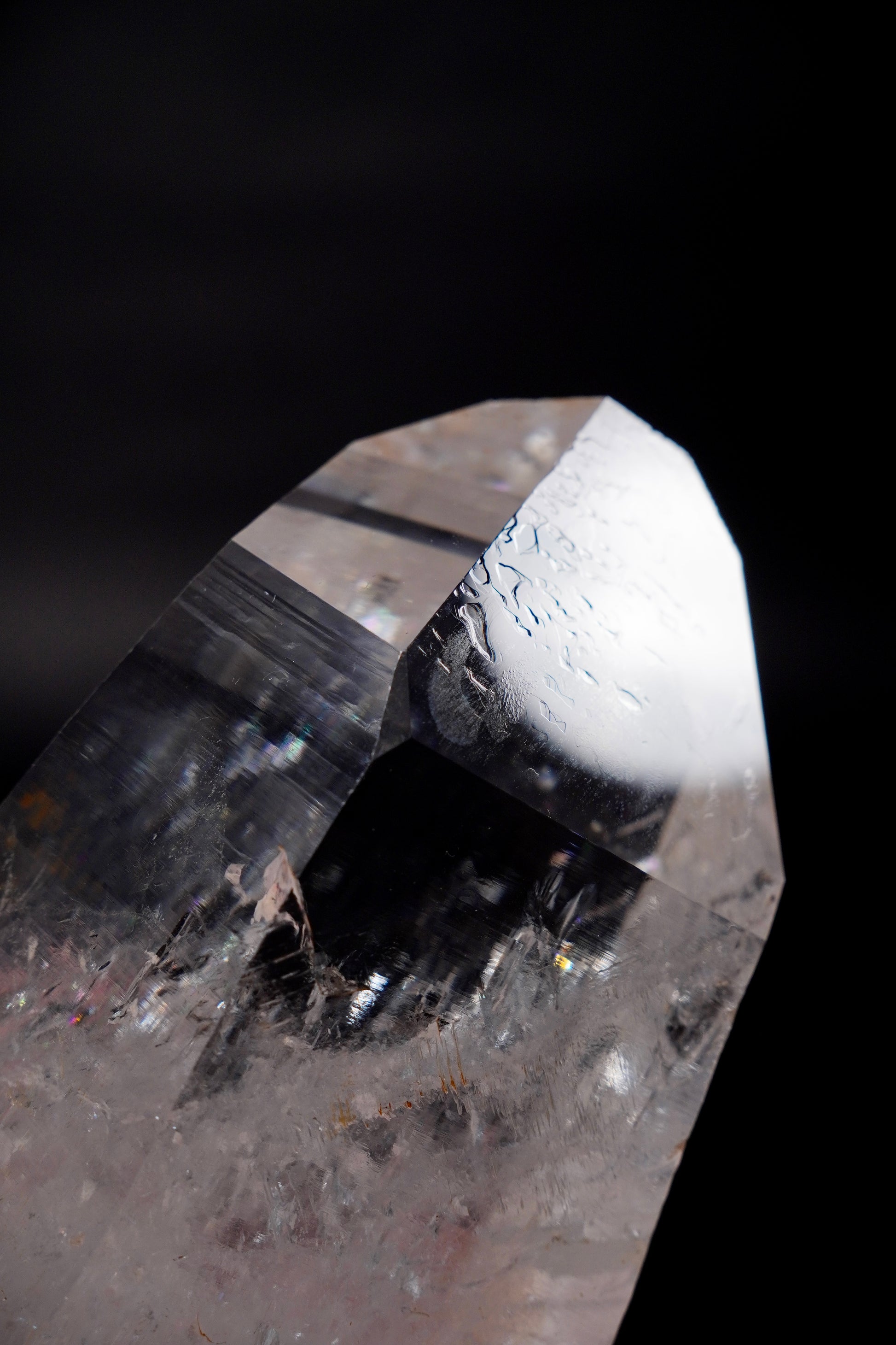 Fire and Ice Peñas Blancas Lemurian Quartz full of rainbows, the main face has hydrothermal etchings.