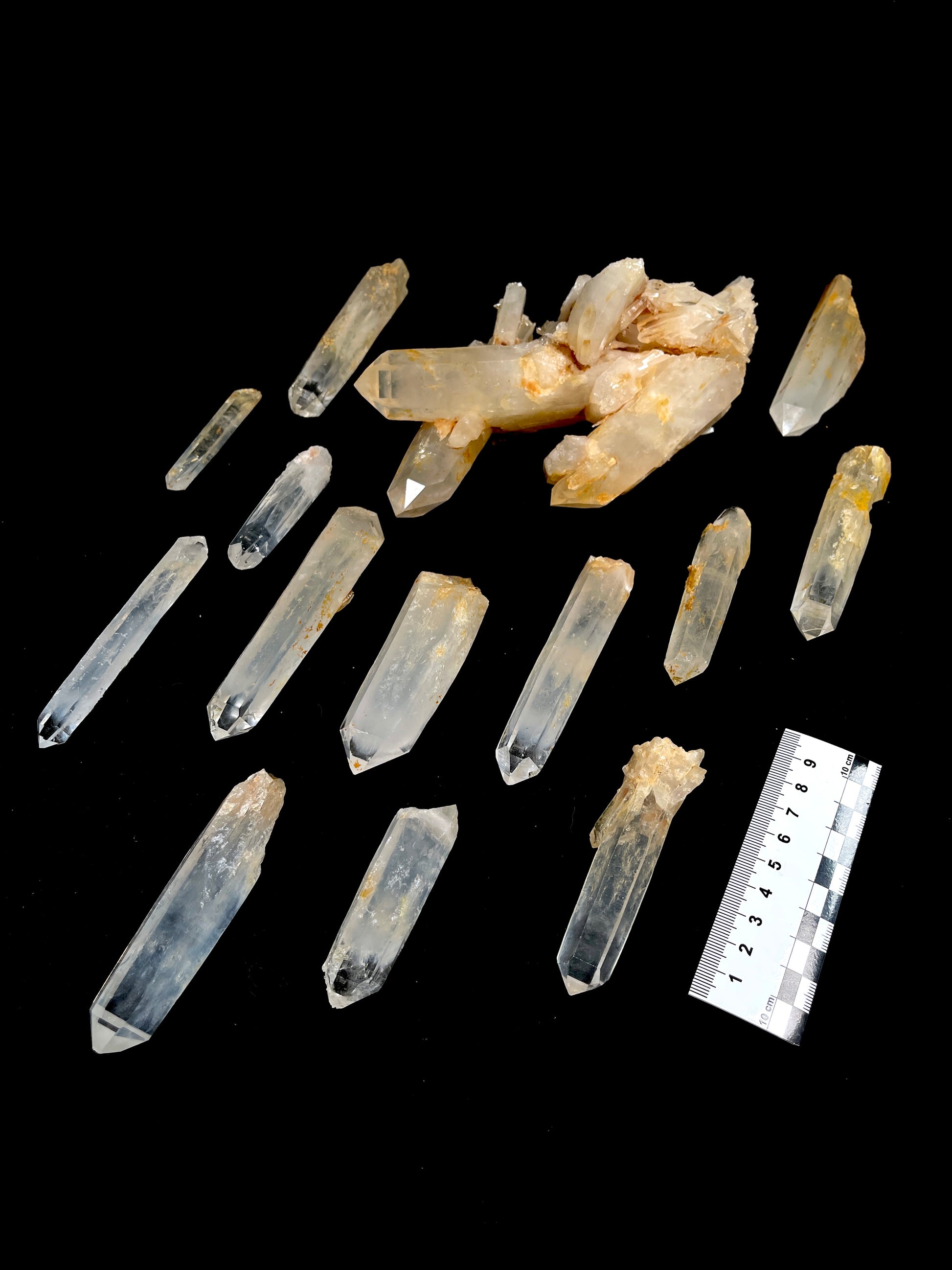 Many of the crystals are incredibly transparent and gemmy, while others have twirling clouds of almost invisible micro-inclusions that produce a bluish opalescence when held up to the light, leading some of its users to baptize it Blue Smoke Quartz. This subtle color effect is produced by the same light scattering properties that make the sky blue.