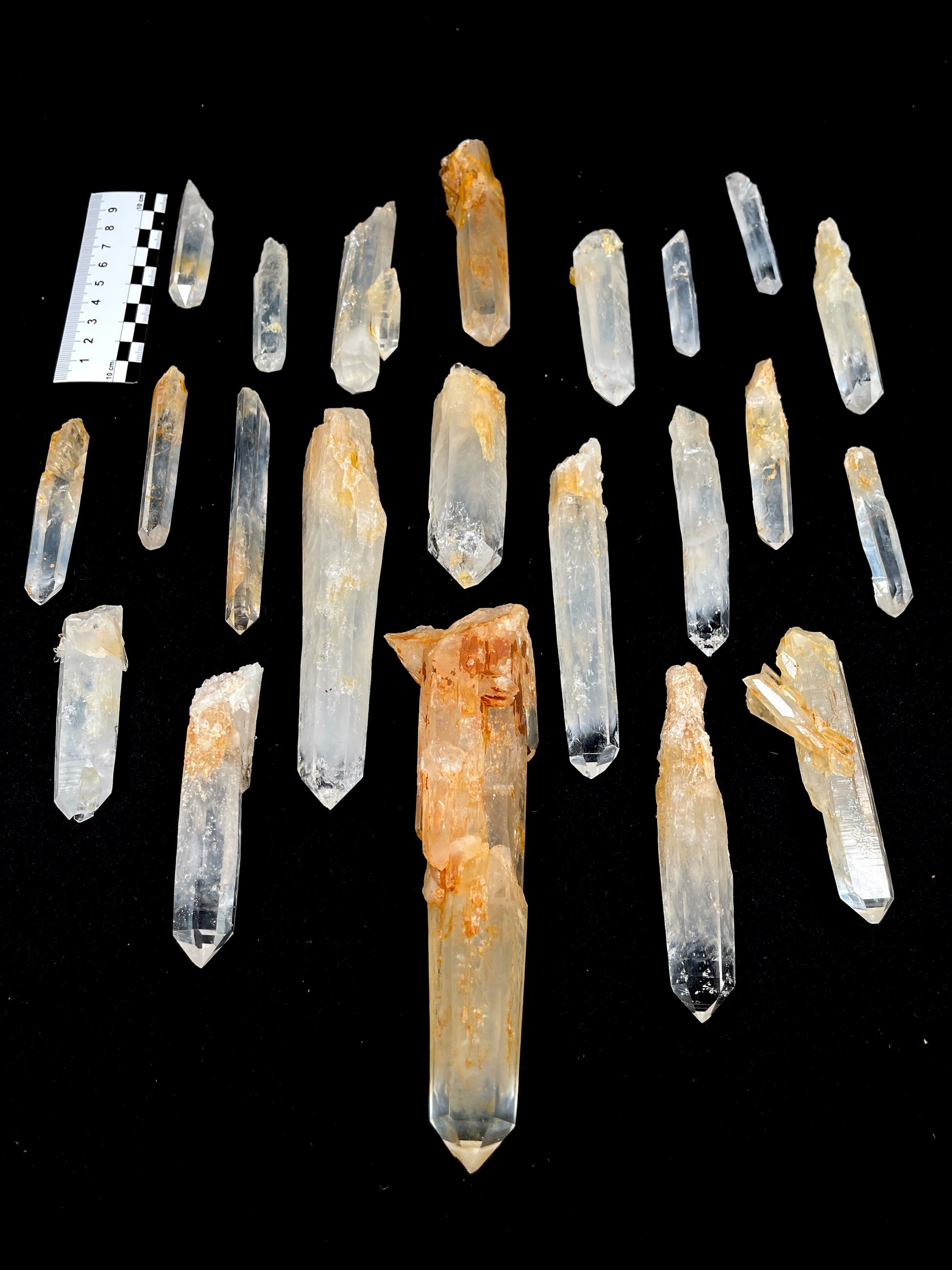 Many of the crystals are incredibly transparent and gemmy, while others have twirling clouds of almost invisible micro-inclusions that produce a bluish opalescence when held up to the light, leading some of its users to baptize it Blue Smoke Quartz. This subtle color effect is produced by the same light scattering properties that make the sky blue.