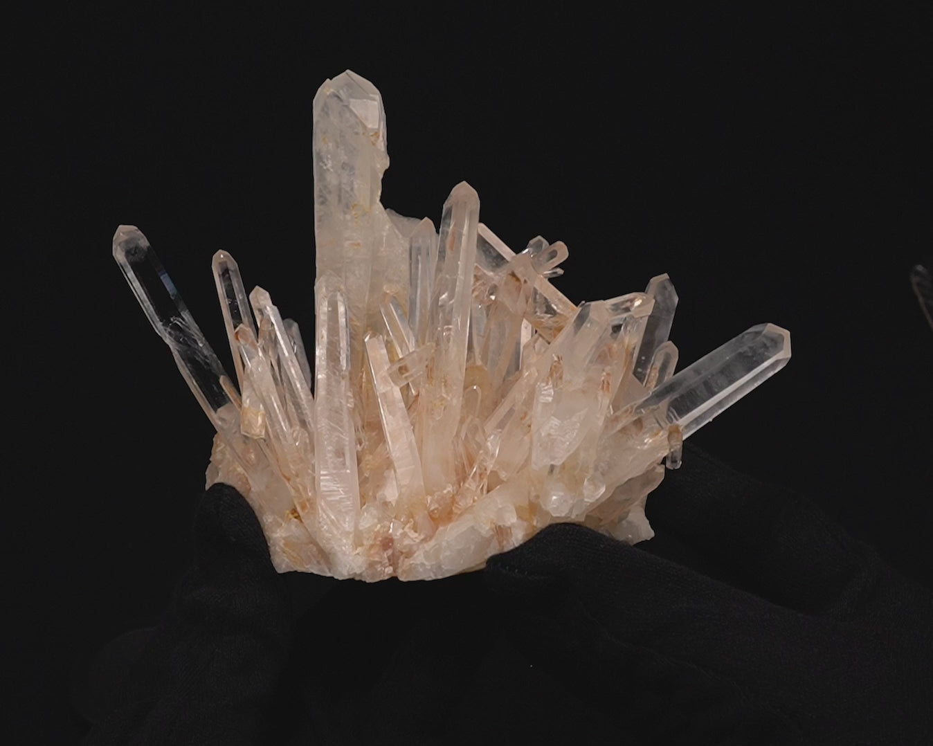 Long super optical points with Blue Feather and Golden Healer inclusions. The thick point in the middle has a self healed termination. It's self standing!