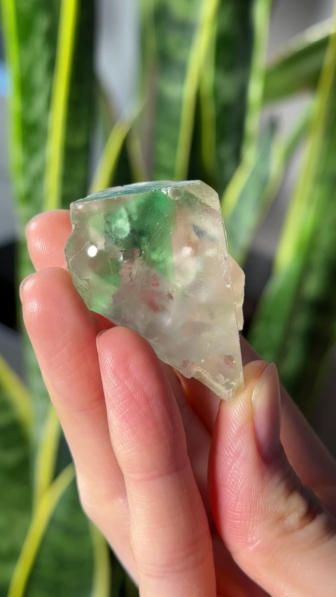 RARE and fascinating bi-colored fluorite crystals from one of the most famous emerald mines of Colombia. Colors vary from light pink to clear/white with an amazing rich grass green Phantom area. The most up to date information on the green inclusions by MINDAT: “The chromophore of these unique green fluorites is parts per million of the element Yttrium, rather than the emerald chromophore, Chromium.” The green area GLOWS, when back lit. Rich blue fluorescence under UV light.