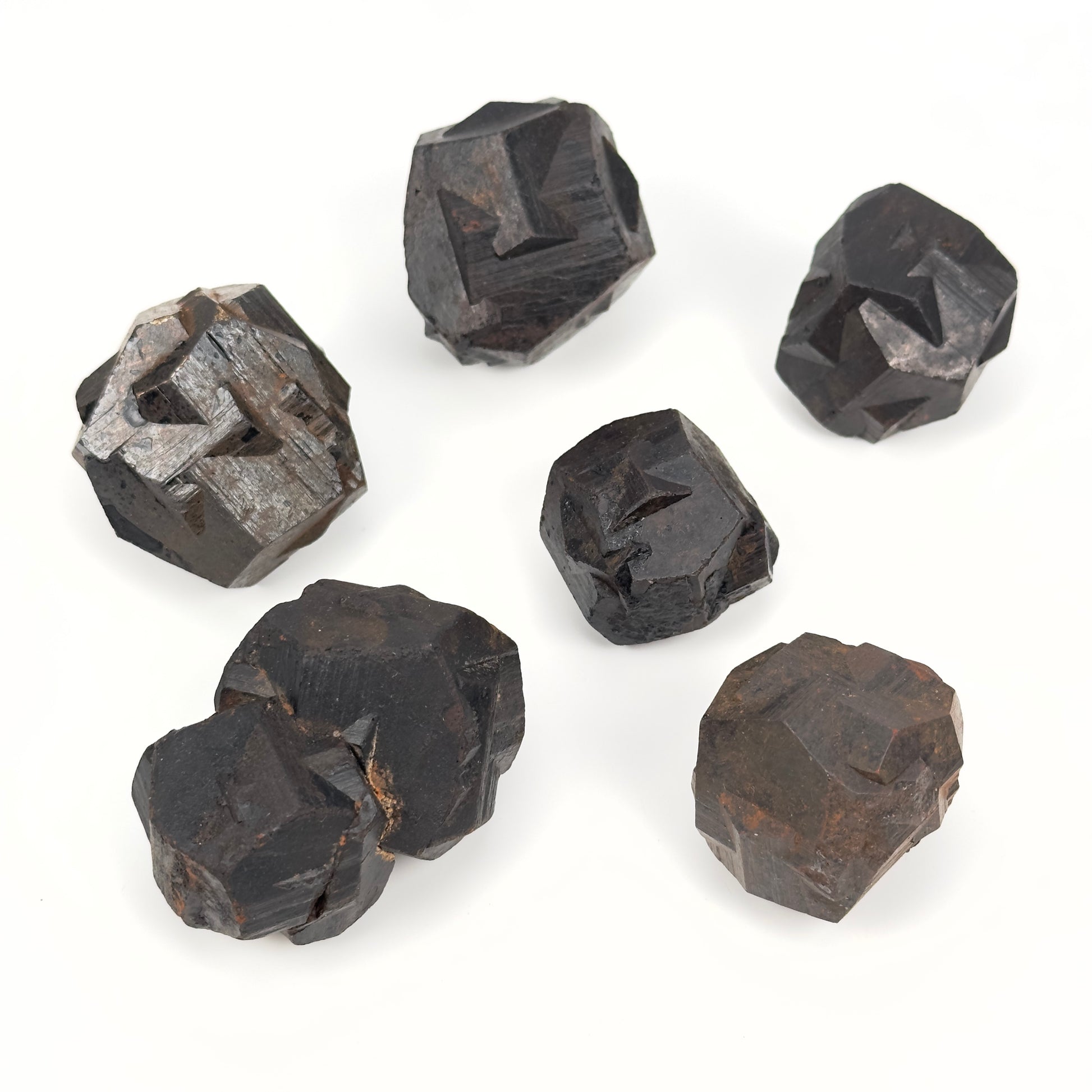 Iron Cross Twin Pyrite, otherwise known as Goethite PS. After Pyrite, is pseudomorph pyrite, meaning it has been replaced with goethite on the surface.“Iron-cross twins” are twinned crystals exhibiting the forms of two interlocking pentagonal dodecahedra (also known as pyritohedra). These twins display edges crossing at 90 degrees, and in an idealized/model twin, these edges form a cross. In nature, the edges that form the cross are sometimes not continuous or are not equal to one another, so a pyrite crystal that is twinned according to the iron-cross law may or may not exhibit an actual cross shape, but in any event the relationship of the crystals exhibits the “crossed” symmetry.