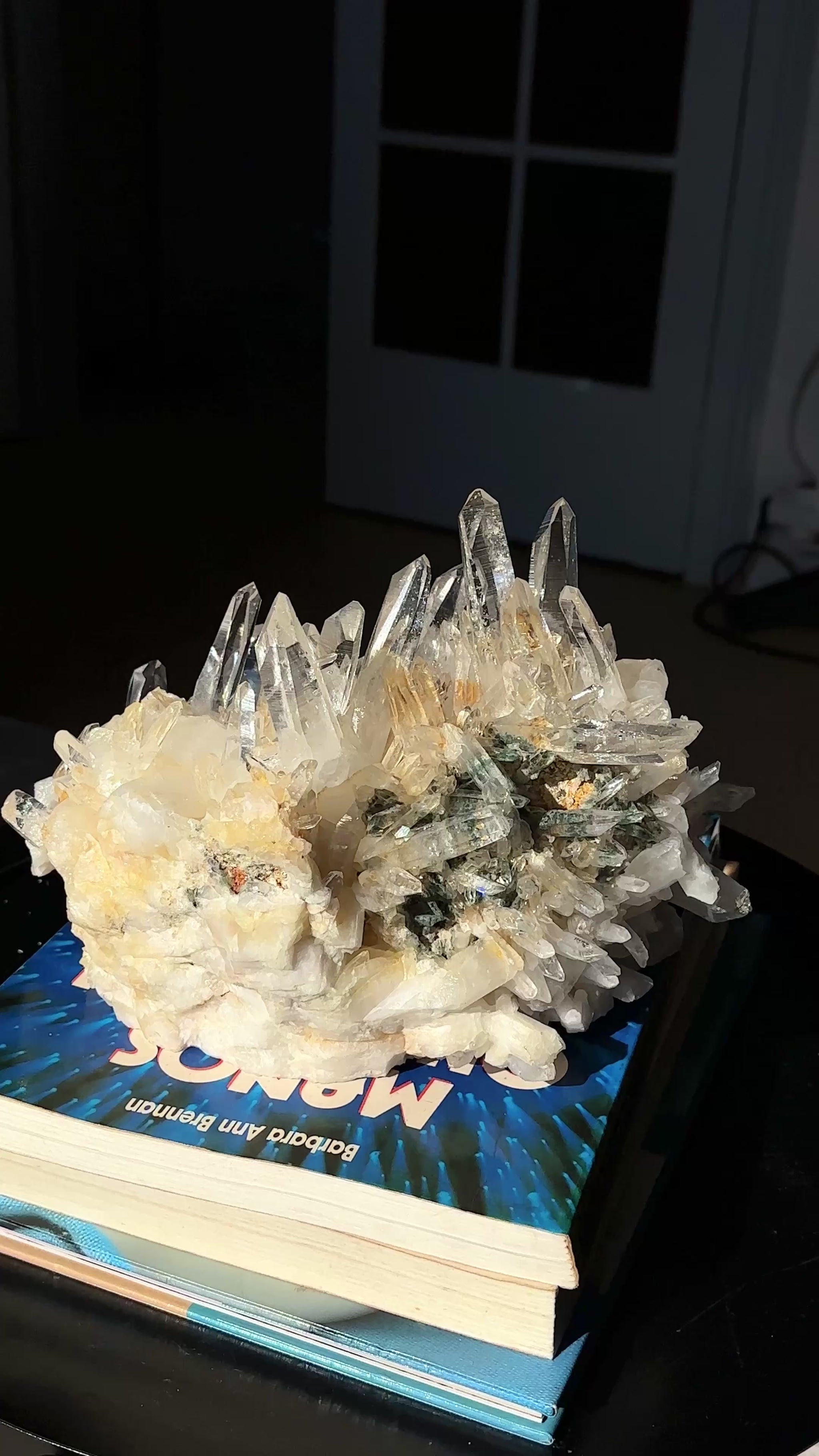 Extra Aesthetic Formation! This water clear Points, some have simple link windows. The back of the cluster is beautifully Chlorite included.