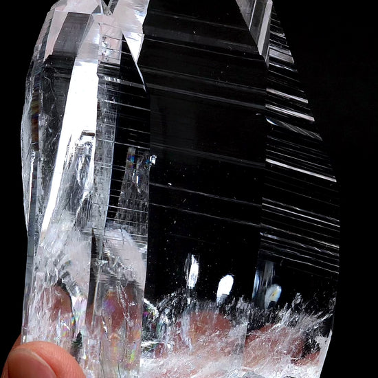 Due to the complexity and force of the extraction process, most of the production is lost or damaged, making high-quality Lemurian crystals from this mine extremely rare. Minor surface nicks or imperfections are completely normal and expected as a result of the rugged conditions.