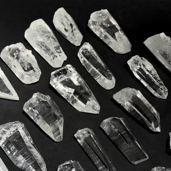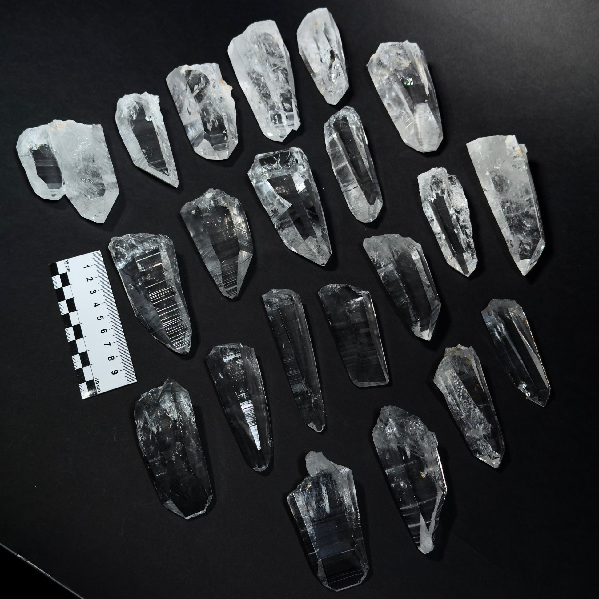 Due to the complexity and force of the extraction process, most of the production is lost or damaged, making high-quality Lemurian crystals from this mine extremely rare. Minor surface nicks or imperfections are completely normal and expected as a result of the rugged conditions. Some of the points in this lot have been slightly polished on the termination.