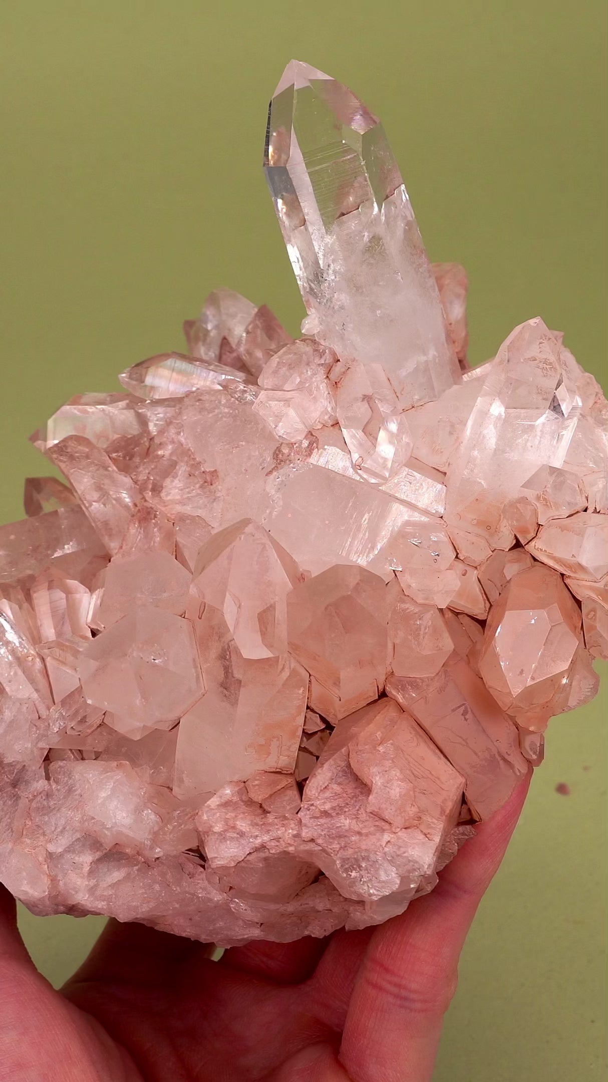 Extra high quality Colombian Pink Lemurian Quartz Cluster, carefully hand selected from the source and then doubly selected directly in our warehouse.