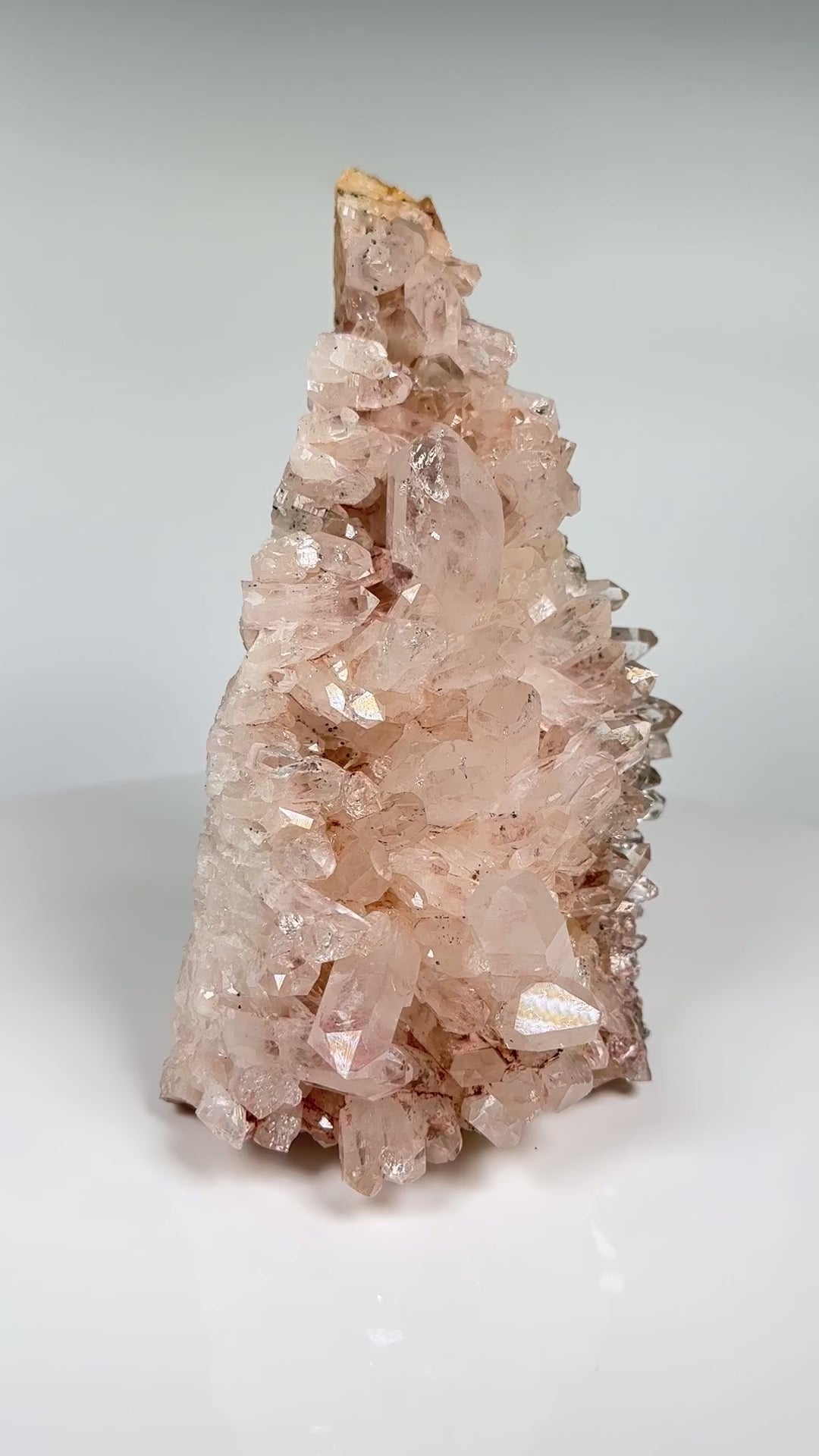 This cluster is one of Nikho's favorite, it can naturally self stand like shown in the photos but you can also display it horizontally and it has a small cave in the back!