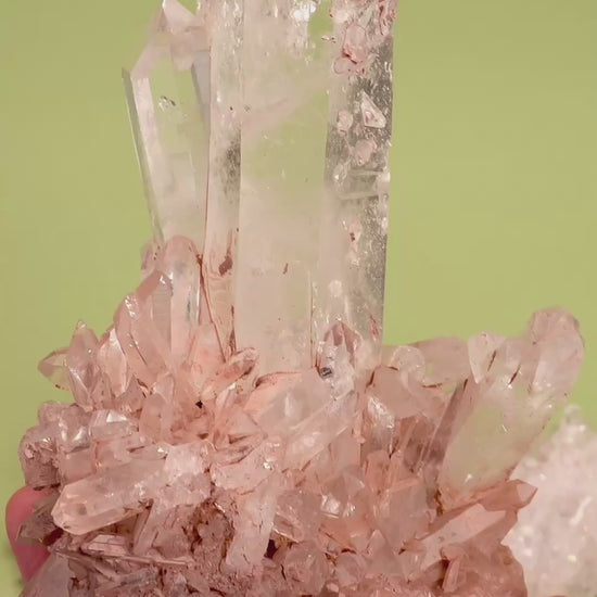 Extra high quality Colombian Pink Lemurian Quartz Clusters, carefully hand selected from the source and then doubly selected directly in our warehouse.