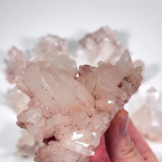 Extra high quality Colombian Pink Lemurian Quartz Clusters, carefully hand selected from the source and then doubly selected directly in our warehouse.