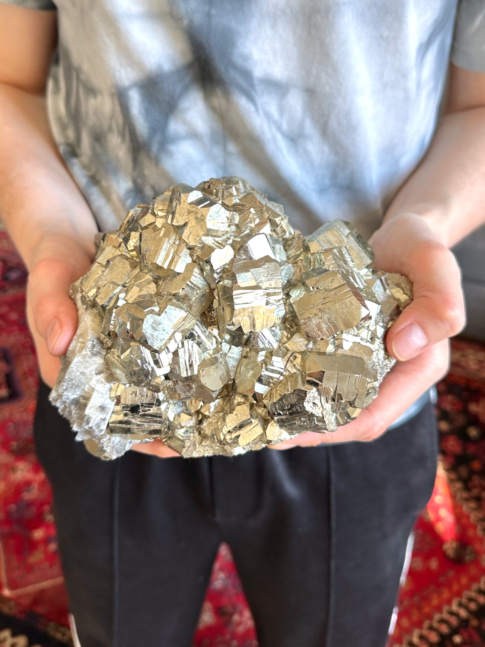 These Pyrite specimens exhibit a beautiful geometrical formation that varies from Cluster to Cluster. Very brilliant and aesthetically pleasing. The pyrites from this location are found right next to Emeralds therefore they are a special rarity.