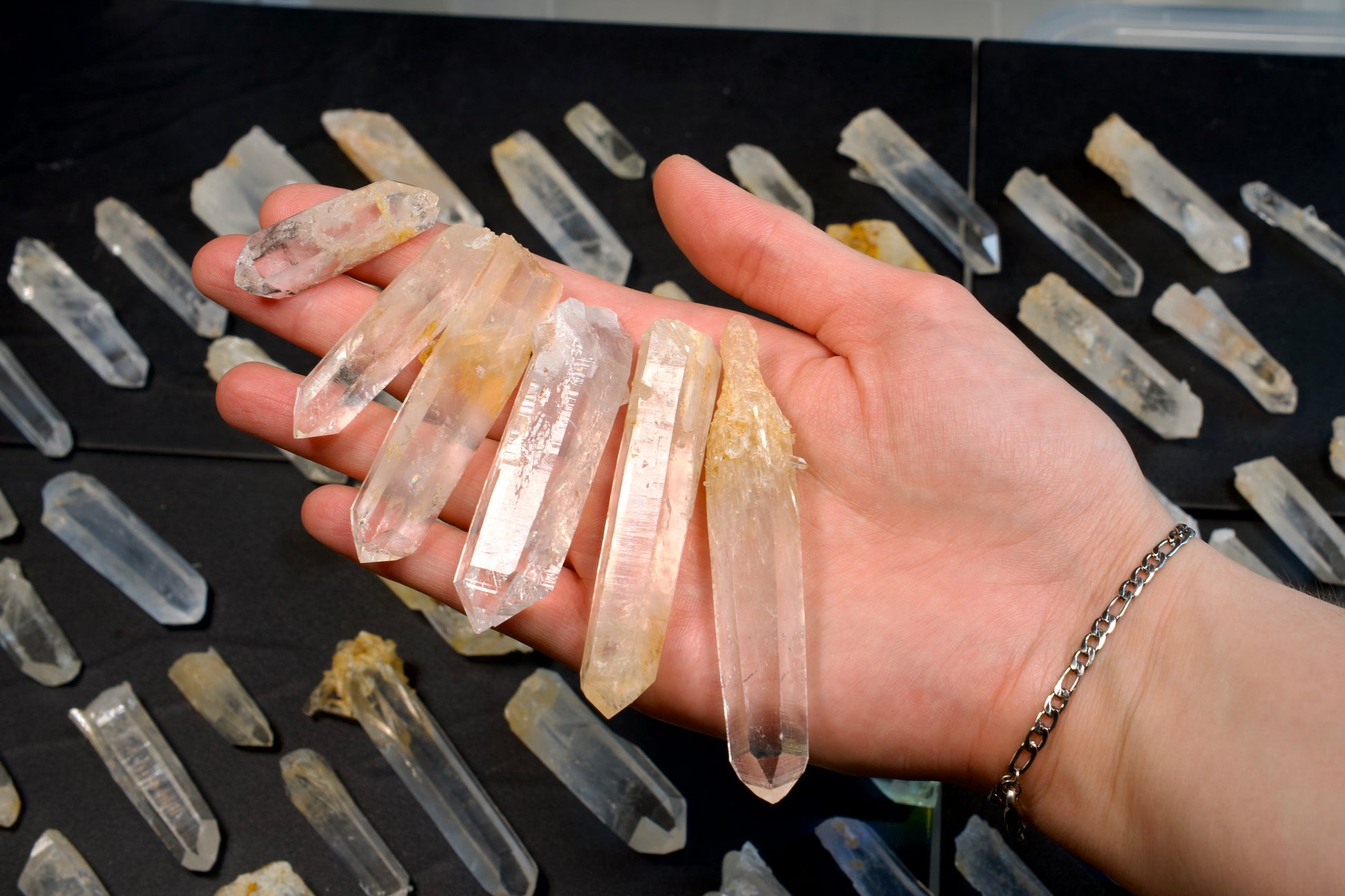 Blue Smoke Lemurian Quartz Crystal points by kilo small size WHOLESALE