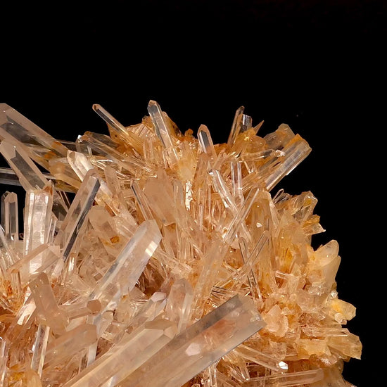 Golden Healer & Super Optical Lemurian Quartz Crystal Clusters featuring thin, elongated terminations — also known as Needle Crystals.