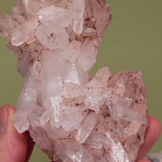Extra high quality Colombian Pink Lemurian Quartz Clusters, carefully hand selected from the source and then doubly selected directly in our warehouse.