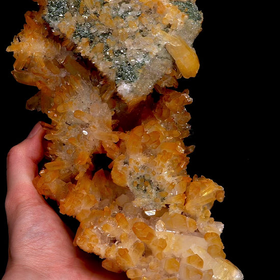 Exquisite Golden Green Lemurian Quartz Cluster featuring a Hollow Core and Starburst Formation